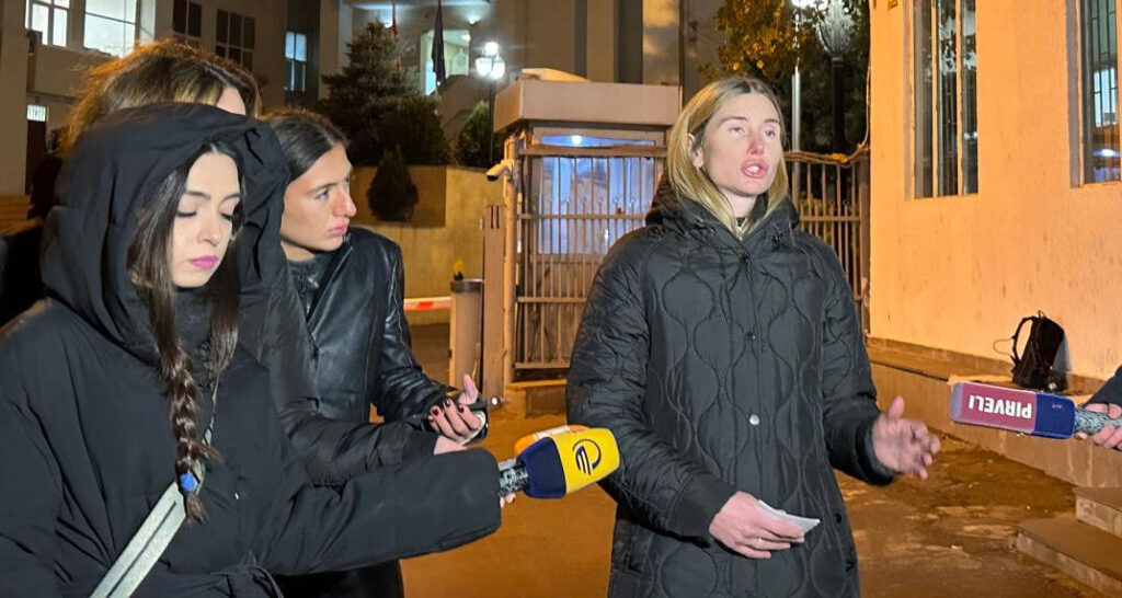 “დღეს ხუთი ჩვენი თანამებრძოლი ახალგაზრდული ორგანიზაციის წევრები, რომლებიც მთელი ამ დღის განმავლობაში ათიათასობით სხვა ახალგაზრდებთან ერთად იდგნენ რუსთაველის გამზირზე, ჩვენი ქვეყნის ევროპული მომავლის დასაცავად, უკანონოდ დააკავა რუსულმა “ომონმა”, კრიმინალურმა დაჯგუფებამ, რომელსაც არანაირი საერთო არ აქვს ქართულ პოლიციასთან. ამ ადამიანების სახელები მოისმინა საზოგადოებამ, მაგრამ მე კიდევ ერთხელ მინდა გავაჟღერო – დავით გედენიძე, რომლის ძმა და მამა ესწრებოდნენ ამ უკანონო დაკავებას. საბა ბირკაია, მიშო ჯანიკაშვილი, ვახტანგ გაგნიძე და ირაკლი არდია. ექვსი საათის განმავლობაში ადვოკატებს არ ეძლეოდათ საშუალება, რომ მოენახულებინათ ისინი წინასწარი დაკავების იზოლატორში. ესეც მორიგი უკანონობაა, მათი დაკავებაც არის უკანონობა, ჩხრეკაც იყო უკანონობა, არც მე მომცეს შესვლის უფლება, რისი უფლებაც მაქვს, როგორც უფლებამოსილ პირს. ბოლო რამდენიმე დღეა ვხედავთ როგორ აკავებს რუსული “ომონი” მოქალაქეებს, სცემენ, აყენებენ სიტყვიერ და ფიზიკურ შეურაცხყოფას. ახალგაზრდები ჰყვებიან შემზარავ ისტორიებს, რომ დაკავებისას აფურთხებენ.