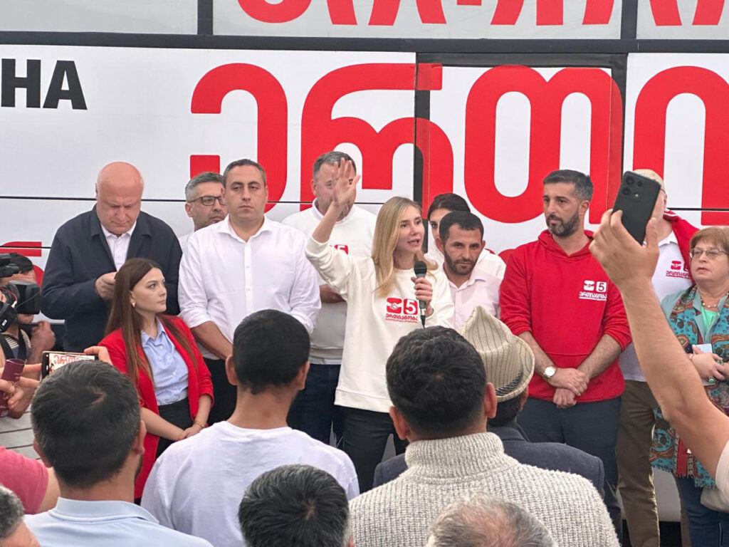 „გამარჯვება არის ძალიან ახლოს, 20 დღე დარჩა გამარჯვებამდე, 20 დღე დარჩა პრეზიდენტი სააკაშვილის გათავისუფლებამდე, 26 ოქტომბერს ერთად ვათავისუფლებთ მიშას! 20 დღე დარჩა იმისთვის, რომ ჩვენი ქვეყანა, რომელიც შეჰყავს ივანიშვილს საერთაშორისო იზოლაციაში, კვლავ დავაბრუნოთ ევროპის გზაზე. მივდივართ ევროპისკენ, რადგან იქ არის მაღალი ხელფასები, მაღალი პენსიები, ჩვენი შვილებისთვის საუკეთესო განათლება, ჩვენი მშობლებისთვის საუკეთესო ჯანდაცვა, ეს გვინდა ჩვენ ჩვენი ქვეყნისთვის და ერთიანობით, 5 ნომრით, აუცილებლად მოვიპოვებთ ამ გამარჯვებას.