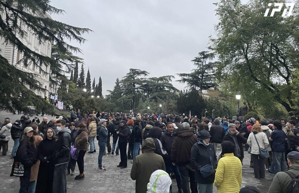 თბილისის სახელმწიფო უნივერსიტეტის პირველ კორპუსთან აქცია მიმდინარეობს. ადგილზე, სტუდენტები, პროფესორ-მასწავლებლები, აქციების დროს დაკავებული მოქალაქეების ოჯახის წევრები და სამოქალაქო აქტივისტები არიან შეკრებილი.