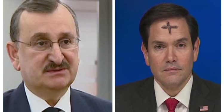 „ფოქსნიუსის პირდაპირ ეთერში ამერიკის სახელმწიფო მდივანი ანუ საგარეო საქმეთა მინისტრი მარკო რუბიო შუბლზე ჯვარგამოსახული ჩაერთო. ასე აფრთხობს “ფოქსის” ეშმაკებს. თუ ოდესმე “იმედზე” გვაღირსეს პირდაპირ ეთერში ჩართვა, აუცილებლად ასეთ ჯვარს გავიკეთებ.