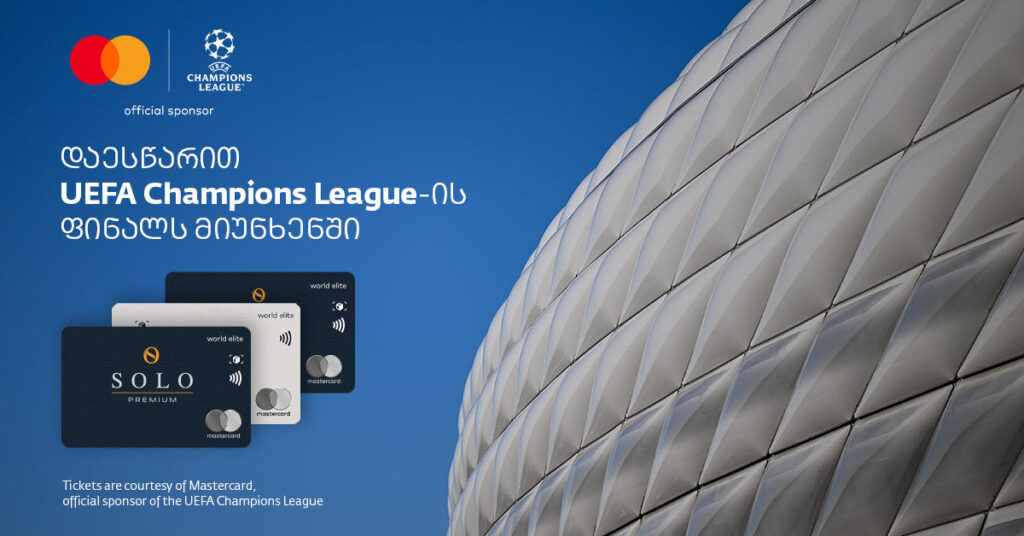 SOLO Mastercard World Elite ბარათის მფლობელებს, შესაძლებლობა აქვთ, ჩაერთონ გათამაშებაში და გაემგზავრონ მიუნხენში, UEFA-ს ჩემპიონთა ლიგის ფინალზე დასასწრებად.