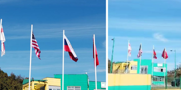 ფოტო და ვიდეო, რომელზეც შენობის წინ მოფრიალე რუსეთის დროშა ჩანს, მოქალაქემ კვირას, 10 ნოემბერს გადაიღო და „ბათუმელებს“ მიაწოდა.