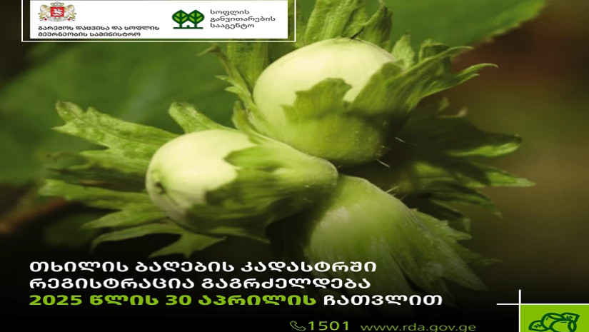 თხილის წარმოების ხელშეწყობის პროგრამის ფარგლებში, თხილის კადასტრში ბაღების რეგისტრაციის ვადა 30 აპრილის ჩათვლით გაგრძელდა