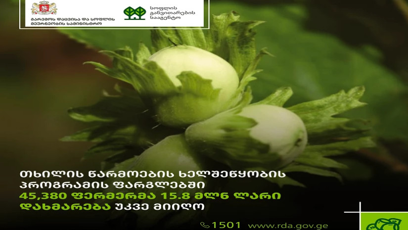თხილის წარმოების ხელშეწყობის სახელმწიფო პროგრამის ფარგლებში, 45,380 ფერმერმა 15.8 მლნ ლარი დახმარება უკვე მიიღო