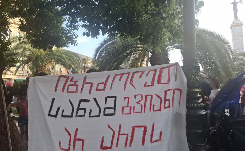 ამასთან, სტუდენტებმა, პოლიტიკოსებმა და რიგითმა მოქალაქეებმა ადგილზე მზია ამაღლობელის სიტყვებისგან გაკეთებული ბანერიც გაშალეს, სადაც წერია – “იბრძოლეთ, სანამ გვიანი არ არის”.