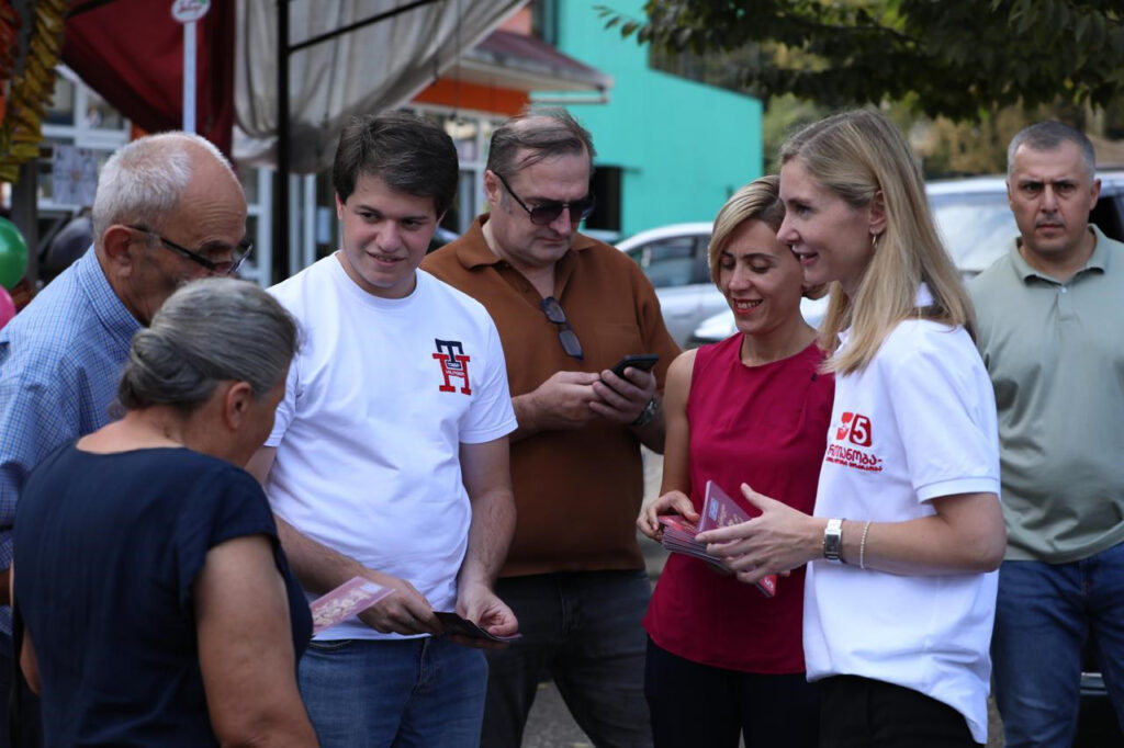 იგორ ნარმანია პარტიის თავმჯდომარესთან, თინა ბოკუჩავასთან და პარტიის ლიდერებთან ერთად წალენჯიხის ბაზარში მოსახლეობას ხვდება.