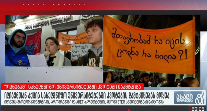 ილიას სახელმწიფო უნივერსიტეტის სტუდენტები ქართული ოცნების განათლების ე.წ. რეფორმის გაწვევას ითხოვენ. ამის შესახებ მათ უნივერსიტეტთან გამართულ აქციაზე განაცხადეს.