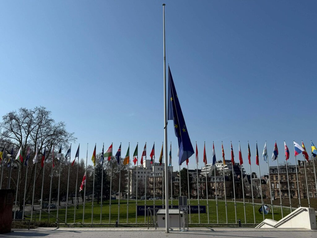 სტრასბურგში, ევროპის სასახლის წინ ევროპისა და საქართველოს დროშები დაეშვა.