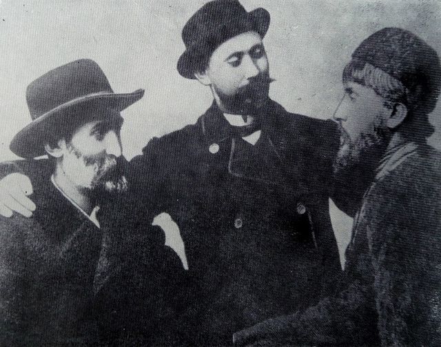 ფოტოზე: ვაჟა-ფშაველა, შიო მღვიმელი და დიმიტრი მაჩხანელი.