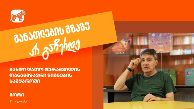 ამჯერად, 11 ივლისს, გორში, სასტუმრო Gori Inn- ში, 19:00 საათზე, მწერალი დავით ტურაშვილი წიგნების მოყვარულთათვის შეხვედრას გამართავს და მისულ სტუმრებს განათლებაზე, ლიტერატურასა და წიგნიერების მნიშვნელობაზე ესაუბრება.