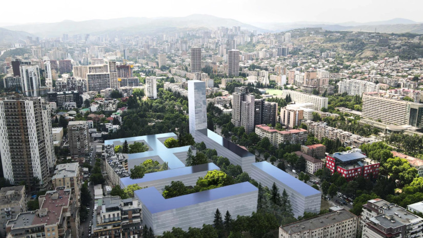 ნაკვეთი 3 ; ფართობი: 19720 კვ.მ. – საპროექტო შენობა შედგება 2 ბლოკისაგან, რომლის ძირითადი ფუნქციაა: სამედიცინო კომპლექსი, უნივერსიტეტი, ადმინისტრაციული ნაწილი, საცხოვრებელი ბლოკი (კამპუსი). ორივე ბლოკი 8 სართულიანი მოცულობებისაგან შედგება. განაშენიანების რეგულირების პარამეტრები : სამი მიწისქვედა და 8 მიწისზედა სართული,“- წერია გეგმარებით დავალებაში.