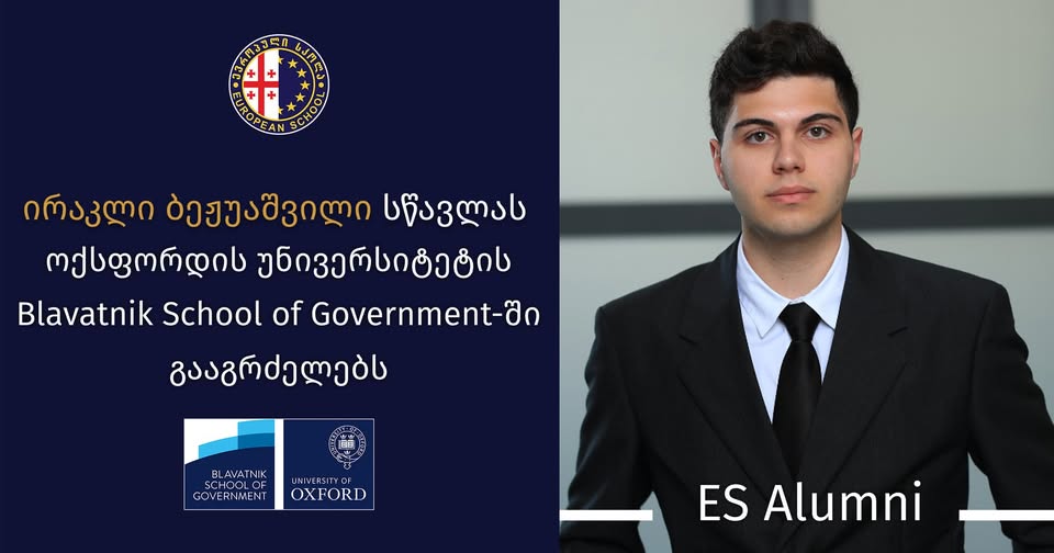 „ევროპული სკოლის” კურსდამთავრებული ირაკლი ბეჟუაშვილი სწავლას გააგრძელებს ოქსფორდის უნივერსიტეტის Blavatnik School of Government-ში, სადაც საჯარო პოლიტიკის მაგისტრის (MPP) ხარისხს მიიღებს. ოქსფორდის უნივერსიტეტამდე მან კოლუმბიის უნივერსიტეტი დაამთავრა.