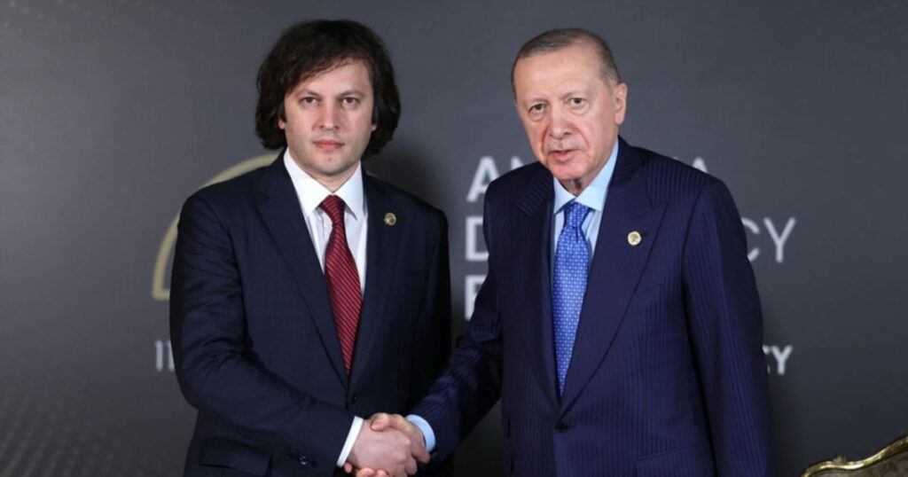 ირაკლი კობახიძისა და რეჯებ ტაიპ ერდოანის შეხვედრა ანტალიის დიპლომატიის ფორუმის ფარგლებში ჩატარდა. მანამდე, ამავე ფორუმის ფარგლებში, ირაკლი კობახიძე ალან ბერსეს, ვიქტორ ორბანს და ილჰამ ალიევს შეხვდა.