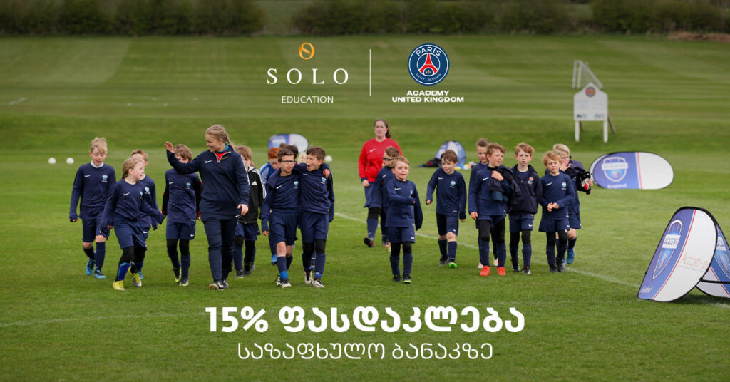 SOLO Education-ისა და Anglo-Georgia-ს თანამშრომლობის ფარგლებში, ექსკლუზიურად SOLO მომხმარებლებს შესაძლებლობა აქვთ, დიდ ბრიტანეთში, Paris Saint-Germain-ის აკადემიის საზაფხულო ბანაკზე ისარგებლონ 15%-იანი ფასდაკლებით.