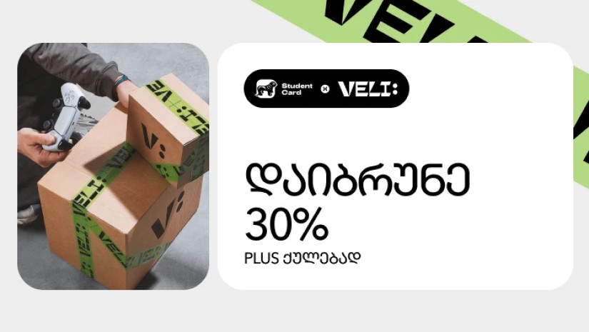 VELI.store ქართული ელ.კომერციის პლატფორმაა, რომელიც მომხმარებელს საშუალებას აძლევს ყველაფერი ერთ სივრცეში შეიძინოს და დაზოგოს ყველაზე მნიშვნელოვანი რესურსი – დრო. ხოლო, 28 მარტს, მხოლოდ ერთი დღით ველი საქართველოს ბანკთან თანამშრომლობით ახალ აქციას გთავაზობს, რომელიც ახალგაზრდებისთვის აქტუალური პროდუქციის ხელმისაწვდომობის გაზრდას ისახავს მიზნად.