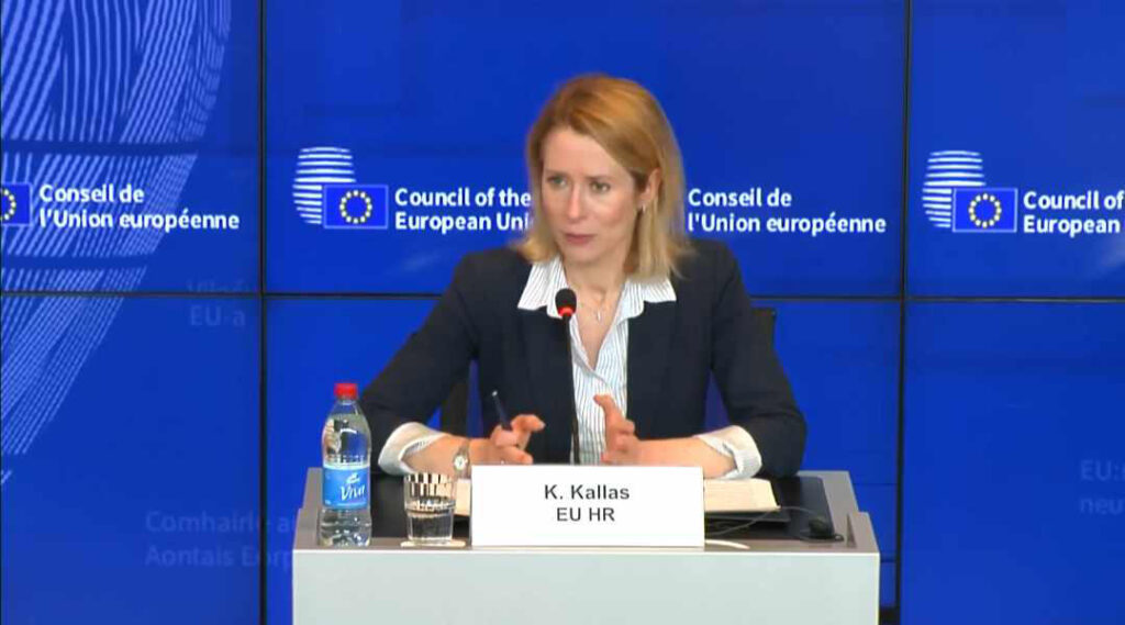 „ნათლად განვაცხადე, რომ ისრაელის თავდაცვის ძალებმა დახმარების განაწილების პუნქტებში მშვიდობიანი მოსახლეობის მკვლელობები უნდა შეწყვიტონ. ყველა ვარიანტი განიხილება, თუ ისრაელი თავის ვალდებულებებს არ შეასრულებს“, – წერს კაია კალასი.