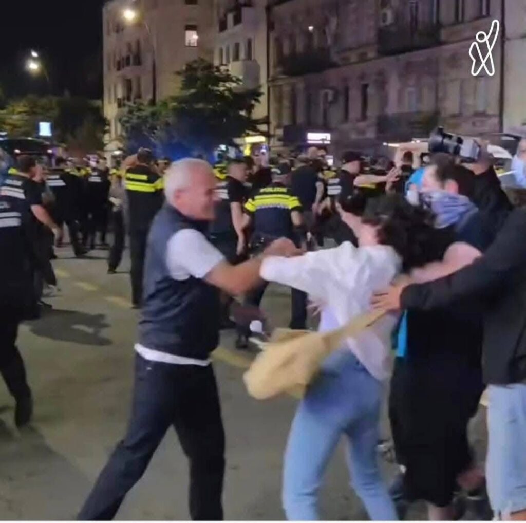 კალაძის საარჩევნო შტაბის წევრის უხამსი ჟესტი აქციის მონაწილეების მისამართით (ვიდეო)