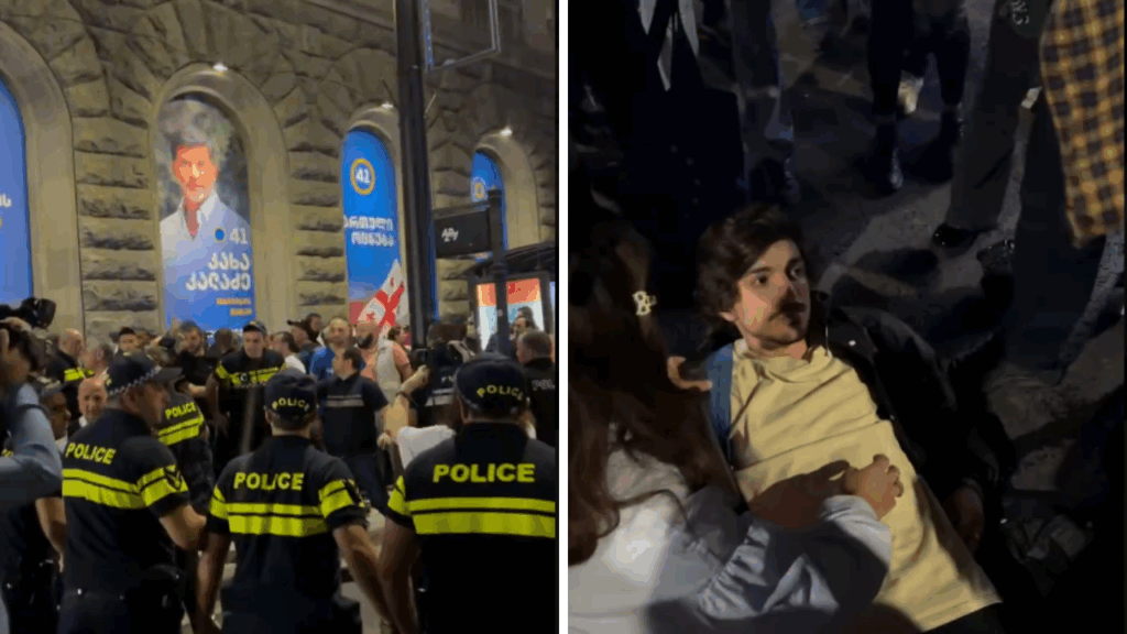 თბილისში, მელიქიშვილის გამზირზე, სადაც კახა კალაძის საარჩევნო შტაბია, დაპირისპირებაა.