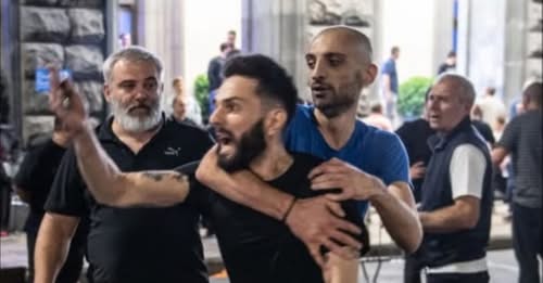 - დაპირისპირების კადრებში ჩანს, რომ ხელისუფლების მომხრეები ფიზიკურად უპირისპირდებიან არა მხოლოდ დემონსტრანტებს, პოლიციელებსაც. პოლიციელები მათზე ძალადობას უარყოფენ.