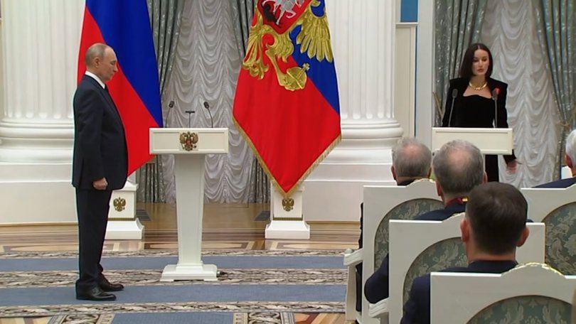 კრემლის პროპაგანდისტ თინა კანდელაკს პუტინმა ალექსანდრე ნეველის სახელობის ჯილდო გადასცა.
