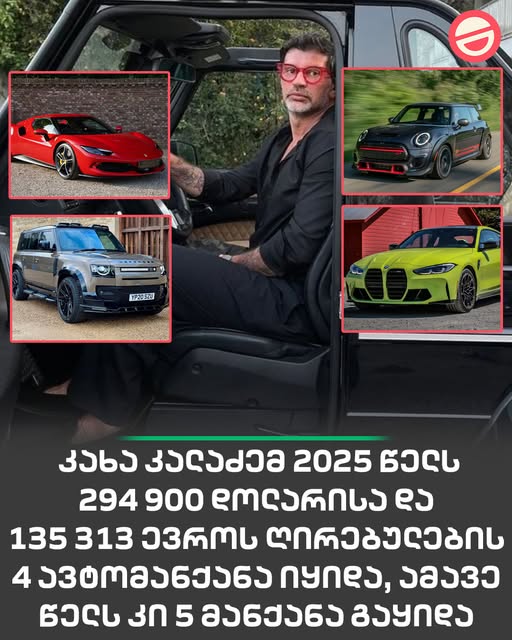 კახა კალაძემ 2025 წელს 294 900 დოლარისა და 135 313 ევროს ღირებულების 4 ავტომანქანა იყიდა, ამავე წელს კი ოთხივე მანქანა გაყიდა