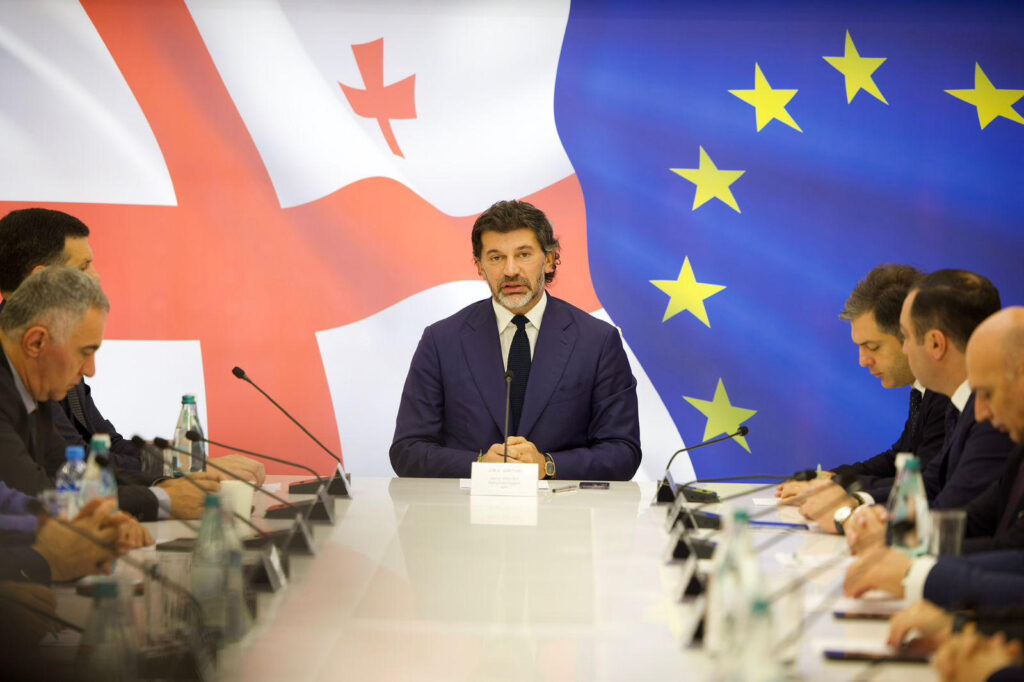 „კატეგორიულად მიუღებელია ის დამოკიდებულება, რასაც ევროპის ზოგიერთი მაღალჩინოსნის და ზოგიერთი ევროპარლამენტარის მხრიდან ვხედავთ, რა განცხადებებიც კეთდება. როგორ შანტაჟდება ქვეყანა მოლაპარაკებების გახსნა-არგახსნის საკითხით. კიდევ ერთხელ ვიმეორებ, რაზეც პრემიერი თავის გამოსვლაში ყოველთვის ხაზს უსვამს, დადეთ მოლაპარაკებების გახსნის საკითხი და საქართველოს ხელისუფლება მზად არის, დღესვე მოაწეროს ამ ყველაფერს ხელი. ყველამ ვიცით, რომ ევროპა მხოლოდ სიტყვები არ არის, ჩვენ კარგად ვიცით, თუ რაზეა დაფუძნებული. ეს არის ის მთავარი ღირებულებები, რაც ძვირფასია ჩვენთვის. რა არის ის ძირითადი პრინციპები, რაზეც ევროპა არის დაფუძნებული. პირველ რიგში, ეს არის მშვიდობა, სამართლიანობა, ადამიანების უფლებები, სიტყვისა და გამოხატვის თავისუფლება და დაცვა, საკუთრების უფლებების დაცვა. ეს არის ღირებულებები, რაც მნიშვნელოვანი და ძვირფასია ჩვენთვის. როდესაც ვამბობთ, გვინდა ევროპა, პირველ რიგში, საქართველოში უნდა ვიცხოვროთ ევროპულად და ყველამ უნდა დავიცვათ ის ღირებულებები, რაზეც ვსაუბრობ, პატივისცემა, განსხვავებული აზრის მოსმენა და ა.შ. თუმცა, სამწუხაროდ, ბოლო დღეების განმავლობაში სრულიად საპირისპირო ქმედებებს ვხედავთ დაზიანებული, განადგურებული ინფრასტრუქტურით, დაშავებული სამართალდამცავებით, მოქალაქეებით, რომლებიც ისვრიან ყველაფერს, რის საშუალებაც გააჩნიათ, მათ შორის იყენებენ არასრულწლოვანებს, ბავშვებს, რაც წარმოუდგენელი და კატეგორიულად მიუღებელია“, – განაცხადა კალაძემ.