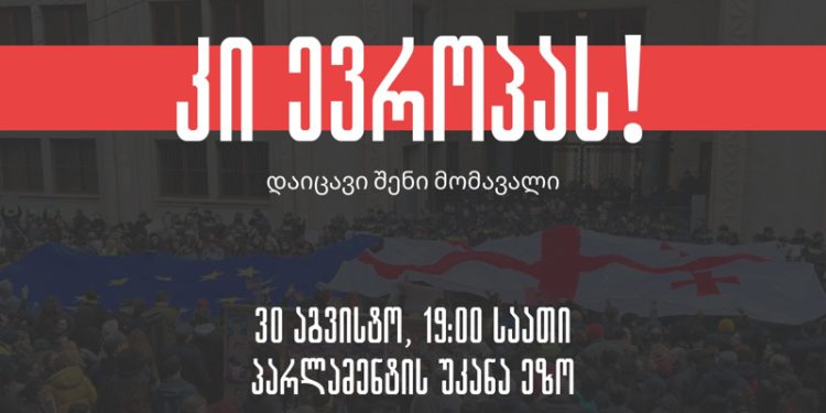 “კი ევროპას – დაიცავი შენი მომავალი” – ამ სახელწოდებით დაანონსდა აქცია თბილისში 30 აგვისტოს.