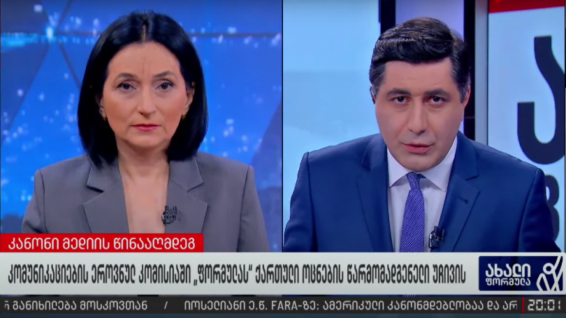 კომუნიკაციების ეროვნულ კომისიაში ფორმულას ქართული ოცნების წარმომადგენელი მაუწყებლობის შესახებ “კანონის ცალკეულ ნორმათა მოთხოვნების დარღვევას ედავება”.
