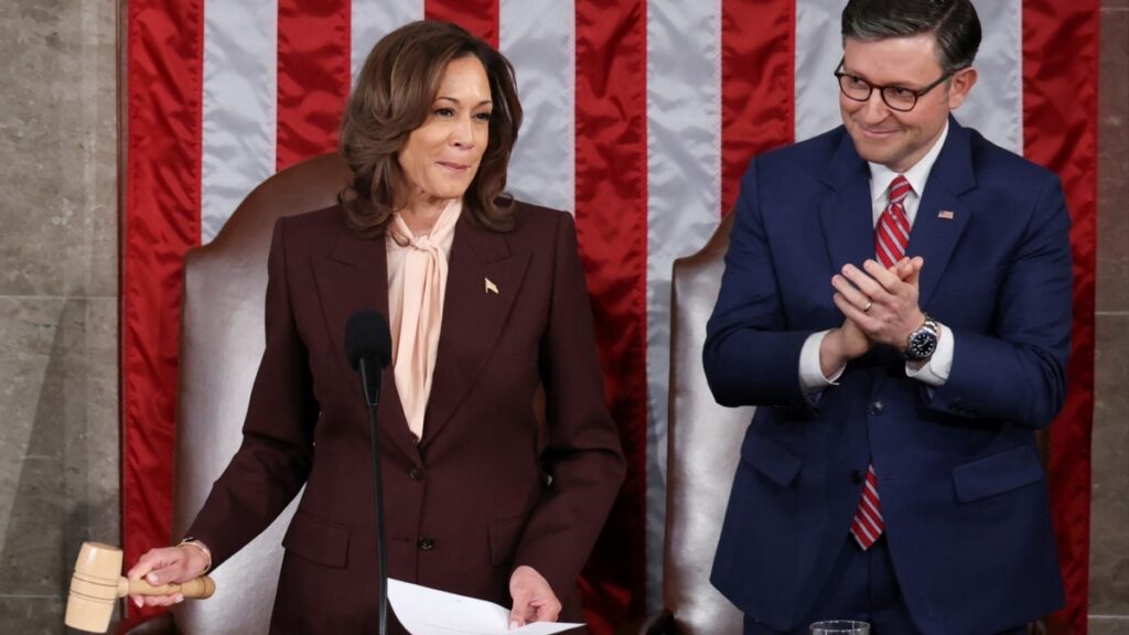 ჰარისმა კონგრესის წინაშე გამოაცხადა, რომ დონალდ ტრამპმა კოლეგიიდან 312 ხმა მიიღო, კამალა ჰარისმა კი – 226.