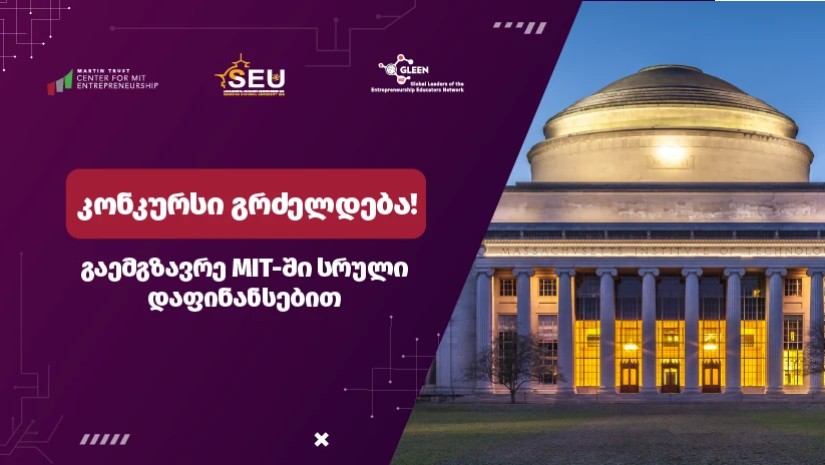 სასწავლო და პროფესიული განვითარების უნიკალური შესაძლებლობა გრძელდება – საქართველოს ეროვნული უნივერსიტეტი SEU ღია კონკურსს აგრძელებს, შერჩეული კანდიდატები მასაჩუსეტსის ტექნოლოგიურ ინსტიტუტში (MIT) გაემგზავრებიან და გაივლიან სრულად დაფინანსებულ ანტრეპრენიორული განათლების პროგრამას.