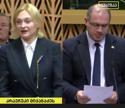ვროსაბჭოს საპარლამენტო ასამბლეაში უკრაინის დელეგაციის წევრმა, ევგენია კრავჩუკმა მიმართა გივი მიქანაძეს, რომელმაც „ჩარევა” უწოდა PACE-ს რეზოლუციას, რომელსაც სხდომაზე ამ წუთებში განიხილავენ – კრავჩუკმა მიქანაძეს უთხრა, რომ „ჩარევაა” ის, რასაც საქართველოში აკეთებს.