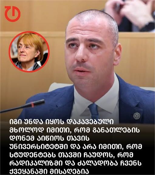 “როდესაც უნივერსიტეტში ასეთ პოზიციაზე ხარ და როდესაც საჯაროდ, ასე ღიად უჭერ ოპოზიციას, რადიკალიზმს მხარს და შემდეგ ცდილობ, რომ სტუდენტების აზრის ფორმირებაზე გავლენა მოახდინო, ეს არის ყოვლად მიუღებელი, ვინაიდან იგი უნდა იყოს დაკავებული მხოლოდ იმითი, რომ სტუდენტების განათლების დონემ აიწიოს თავის უნივერსიტეტში და არა იმითი, რომ სტუდენტებს თავში ჩაუდოს, რომ რადიკალიზმი და ძალადობა არის მისაღები ჩვენს ქვეყანაში” – ამბობს ლევან მაჭავარიანი ილიას სახელმწიფო უნივერსიტეტის რექტორზე, ნინო დობორჯგინიძეზე.
