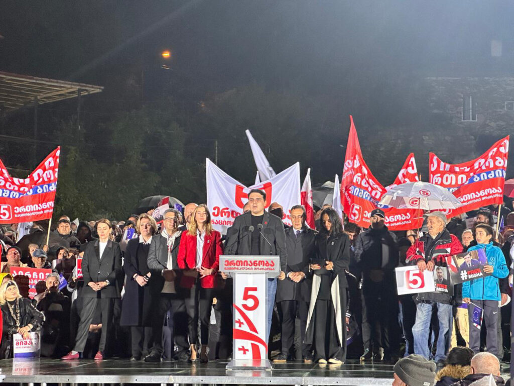 „მივესალმები ქუთაისს, 35 საუკუნის ისტორიის მქონე ქალაქს, რომელიც ამ ბრძოლაშიც დგას ისე, როგორც მას ეკადრება. ეს არის ერთ-ერთი უძველესი ევროპული ქალაქი, უფრო ძველი, ვიდრე რომი და ათენი და ამ ქალაქს აქვს ის ისტორია, რომელიც დღეს ჩვენ საქართველოს ყველაზე მეტად სჭირდება. სიმბოლურია, რომ ჩვენი კამპანია და მისი ფინალური ღონისძიება არის აქ, ბაგრატის ეზოში, საქართველოს ერთიანობის სიმბოლოს ეზოში, რადგან ივანიშვილი თუ რამეს ცდილობს, არის ამ ქვეყნის ისტორიის გადაწერა, ჩვენს მომავალზე უარის თქმა, რასაც არასდროს არ დავუშვებთ.
