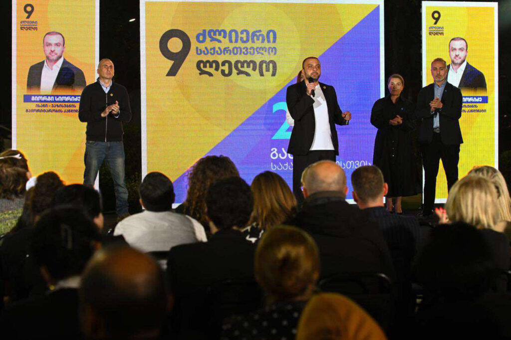 “მივესალმები ყველას, ვისი მიზანიც არის ივანიშვილის რუსული რეჟიმის მარწუხებიდან დაიხსნას და დაიბრუნოს ჩვენი ქვეყანა, ჩვენი თბილისი, ჩვენი ქალაქები და ჩვენი სოფლები. მივესალმები ყველა პოლიტიკურ პატიმარს, რომელიც უკანონოდ ჰყავს დაპატიმრებული რუსულ რეჟიმს. მივესალმები ყველას, ვინც აქციებზე მშვიდობიანად იბრძვის – ეს ჩვენი ბრძოლაა, თუმცა ჩვენ ყველას კარგად უნდა გვესმოდეს, რომ ეს ბრძოლა არის მრავალსაფეხურიანი და ერთ-ერთი საფეხური არის სწორედ 4 ოქტომბრის არჩევნები და ამიტომ, ჩვენი კოალიცია “ძლიერი საქართველო – ლელო” და პარტია “გახარია საქართველოსთვის” მასში მონაწილეობას ვიღებთ, როგორც ბრძოლაში და გვაქვს თქვენი იმედი.