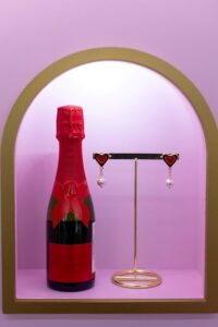 LIYA x Moët საახალწლო კოლაბორაცია არის განსაკუთრებული პროექტი, რომლისთვისაც დიზაინერმა სპეციალური სამკაული (საყურე) და საჩუქრის ჩანთა შექმნა.