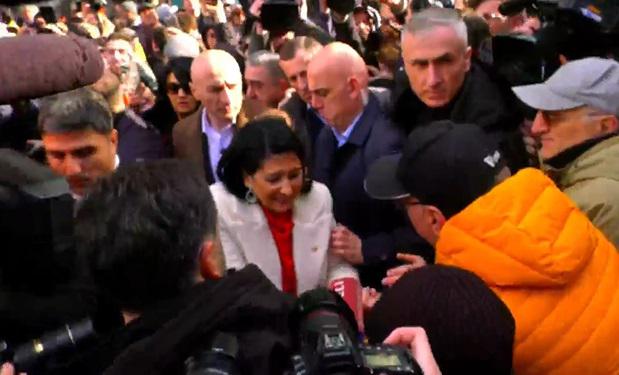 “მადლობა ქალბატონო სალომე, დაცვა თუ დაგჭირდეთ, მე აქ ვარ ნებისმიერ დროს”, – ასე მიმართა ორბელიანების სასახლესთან ერთ-ერთმა მოქალაქემ პრეზიდენტ სალომე ზურაბიშვილს.