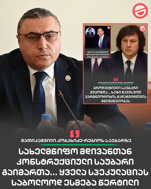 „…რა თქმა უნდა, შეერთებულ შტატებთან, მის ხელმძღვანელობასთან ეს არ არის პირველი კავშირი. ჩვენ ვნახეთ ვიზიტები შეერთებულ შტატებში საქართველოს საპარლამენტო დელეგაციის, პირველი ლედი იმყოფებოდა სულ ახლახან ვაშინგტონში, ასევე შეერთებული შტატებიდანაც მაღალი თანამდებობის პირები სტუმრობდნენ საქართველოს, ხოლო აგერ დღეს სახელმწიფო მდივანთან კონსტრუქციული საუბარი გაიმართა, რომელსაც მაღალი შეფასება მისცა, როგორც ქართულმა, ასევე ამერიკულმა მხარემ. ბუნებრივია, რომ კიდევ ერთხელ, ცალსახად შეგვიძლია, ვთქვათ, რომ მხოლოდ და მხოლოდ სპეკულაციებზე ჰქონდა რადიკალურ ოპოზიციას საკუთარი აგიტაცია და დემაგოგია აგებული და ბუნებრივია, აქ ყველაფერს საბოლოოდ ესმება წერტილი“ – თქვა მათიკაშვილმა კობახიძისა და რუბიოს სატელეფონო საუბართან დაკავშირებით