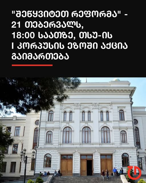 ვიკრიბებით შაბათს, 21 თებერვალს, თსუ -ის პირველი კორპუსის ეზოში”. – წერია აქციის ორგანიზატორების განცხადებაში