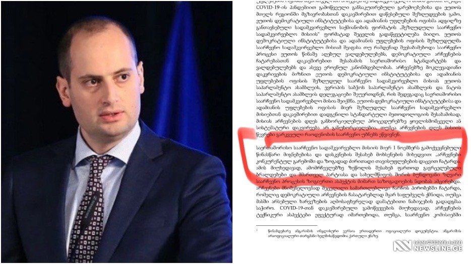 2020 წლის საპარლამენტო არჩევნების დასკვნაში (თანდართულია ფოტო), მიუხედავად მრავალი დარღვევისა, ეწერა, რომ არჩევნები კონკურენტულ გარემოში და ზოგადად ძირითადი თავისუფლებების დაცვით ჩატარდა. ასეთი დასკვნა არ არსებობს 2024 წლის ანგარიშში, რაც ფაქტიურად ნიშნავს არჩევნების არ აღიარებას.