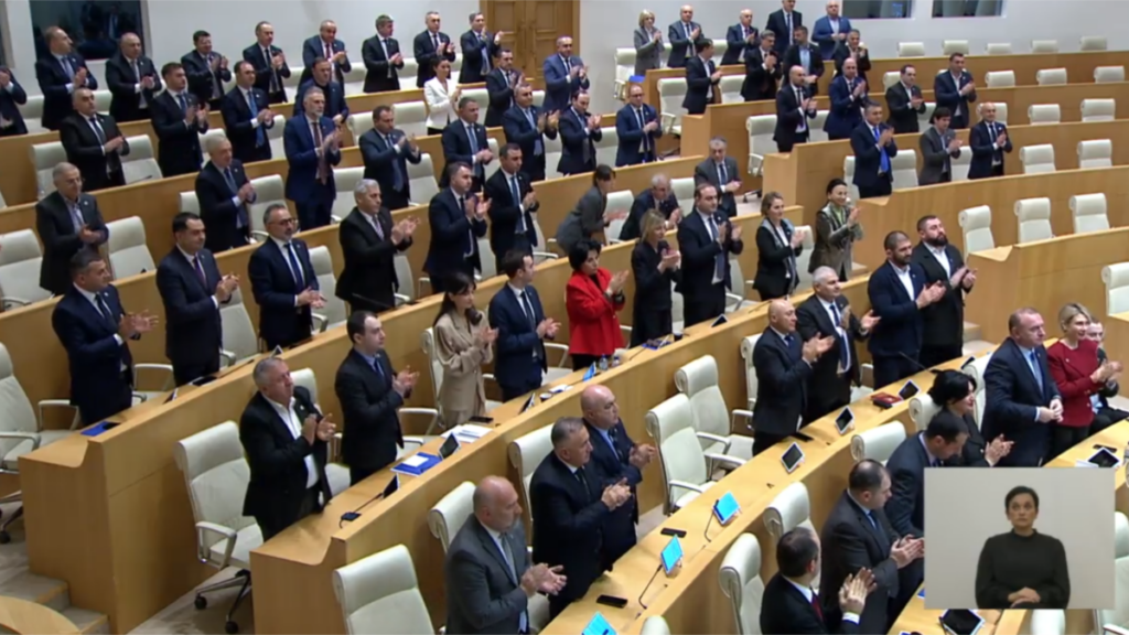 მას შემდეგ, რაც საპარლამენტო უმრავლესობის ლიდერმა მამუკა მდინარაძემ მადლობა გადაუხადა ბიძინა ივანიშვილს, პარლამენტში მყოფი დეპუტატები მას ფეხზე წამოუდგნენ და აპლოდისმენტებით დააჯილდოვეს.