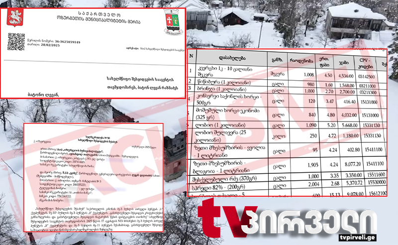 “ტვ პირველის” ხელშია 27 თებერვალს გაფორმებული ხელშეკრულება, სადაც ჩანს, რომ ოზურგეთის მერიამ სტიქიის ზონაში მყოფი მოსახლეობისთვის საკვები პროდუქტების მომარაგებაზე ზრუნვაც ერთი კვირის დაგვიანებით დაიწყო. არადა 21 თებერვლიდან უკვე იცოდნენ, რომ ხალხი ურთულეს მდგომარეობაში იყო – უწყლოდ, საკვების გარეშე, უშუქოდ და სრულ იზოლაციაში.