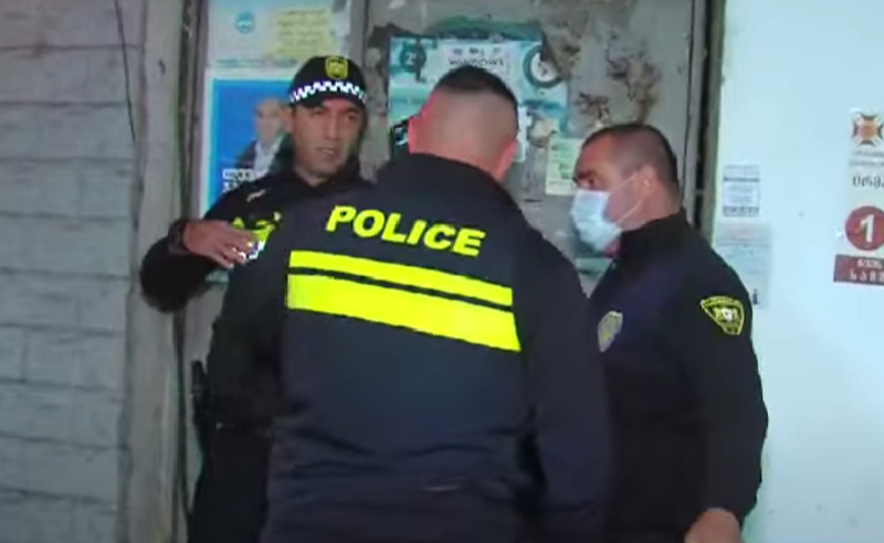 სამართალდამცველები “პირველების” ჟურნალისტს სადარბაზოში შესვლის საშუალებას არ აძლევენ.