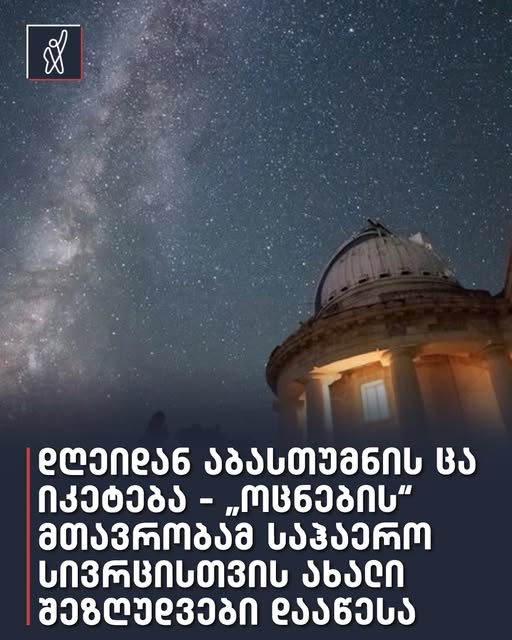 ძალაში შედის „ოცნების“ მთავრობის გადაწყვეტილება, რომელიც ქვეყნის საჰაერო სივრცის წესებს ცვლის და აბასთუმნის თავზე გარკვეულ ზონებში ფრენებს ზღუდავს. ცვლილება ეხება იმ საჰაერო დერეფნებსაც, რომლებსაც საერთაშორისო ავიაკომპანიები ევროპასა და აზიას შორის გადაადგილებისთვის იყენებდნენ. ოფიციალური განმარტებით, ცა აბასთუმნის ასტროფიზიკური ობსერვატორიის მუშაობის პირობების გაუმჯობესებისთვის იკეტება – ობსერვატორიისთვის კრიტიკულად მნიშვნელოვანია ცის მაღალი ხარისხის ხილვადობა და მინიმალური ხელოვნური ზემოქმედება, რის გამოც საჭირო გახდა საჰაერო მოძრაობის შეზღუდვა აღნიშნულ არეალში.