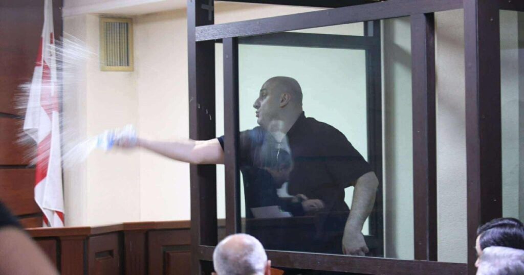 თბილისის საქალაქო სასამართლოში პარტია “ახლის” თანათავმჯდომარის, ნიკა მელიას სასამართლო პროცესი მოულოდნელად შეწყდა მას შემდეგ, რაც მელიამ, რომელიც მოსამართლეს უყვებოდა 29 მაისს მისი გატაცების ამბავს და ამ ამბით დაინტერესებას სთხოვდა, აღელვებულმა წყალი შეასხა.