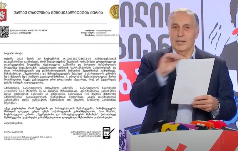 თბილისის მერია აქვეყნებს პაატა ბურჭულაძის წერილს, რომელშიც ის ითხოვს, რომ 4 ოქტომბერს, რუსთველის გამზირსა და თავისუფლების მოედანზე არსებულ 4 ლოკაციაზე “სახალხო შეკრებისა და სცენის მონტაჟისთვის, მუნიციპალური და სახელმწიფო უწყებების ინფორმირებას და აღნიშნული ტერიტორიების შესაბამისი ინვენტარით უზრუნველყოფას”.
