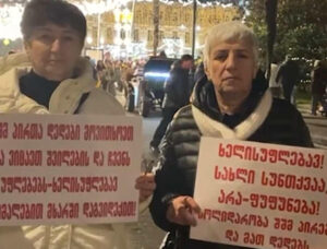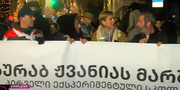 “მე ვარ ქართველი, მაშასადამე ვარ ევროპელი” – ამ შინაარსის ბანერი აქვთ პროტესტის რეჟიმში გადასულ მოქალაქეებს ადგილზე გაშლილი, რომლებიც რეჟიმის ტყვეების გათავისუფლებასა და ხელახალ არჩევნებს ითხოვენ.