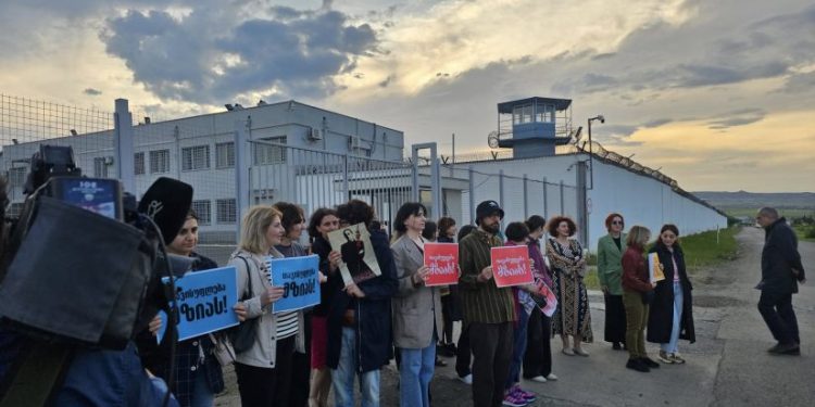 მზია ამაღლობელისთვის დაბადების დღის მისალოცად კოლეგები რუსთავის ციხესთან იკრიბებიან