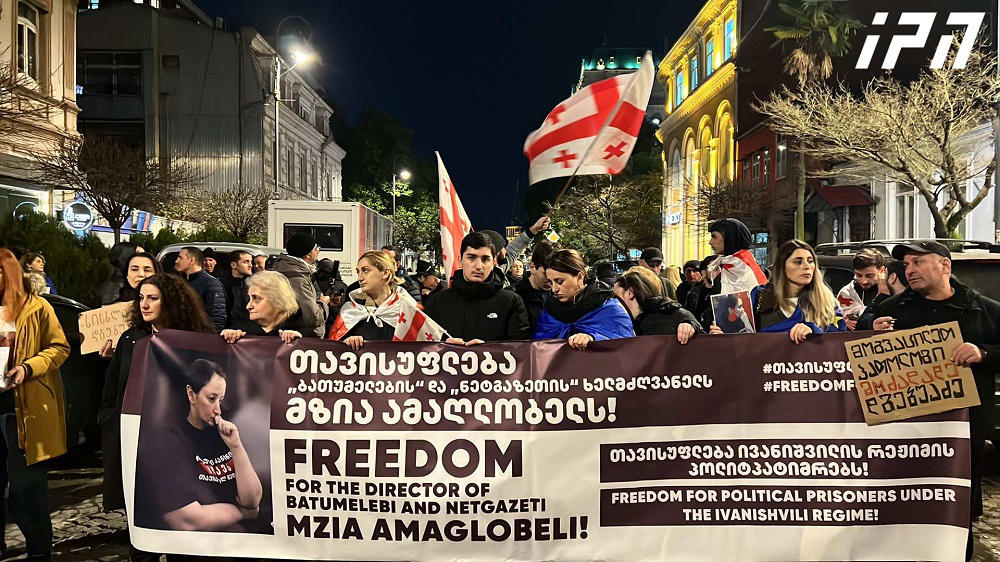 ბათუმში, გამოცემა ბათუმელებისა“ და „ნეტგაზეთის“ ხელმძღვანელის მზია ამაღლობელის მხარდამჭერი აქცია მიმდინარეობს.