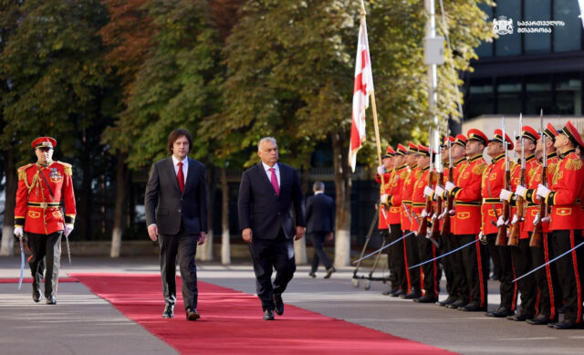 „უნგრელ კოლეგას საქართველოს მთავრობის მეთაურმა ირაკლი კობახიძემ უმასპინძლა. შესრულდა ორი ქვეყნის სახელმწიფო ჰიმნი. საქართველოსა და უნგრეთის პრემიერ-მინისტრებმა ერთმანეთს დელეგაციის წევრები წარუდგინეს.