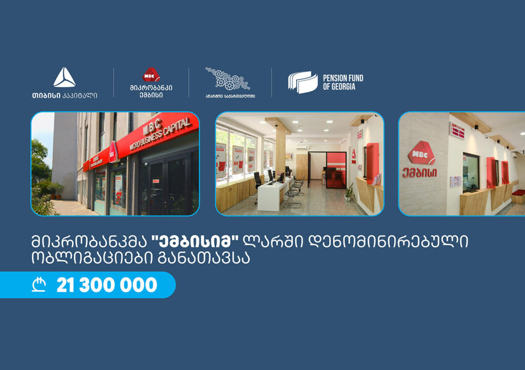 მიკრობანკმა “ემბისიმ“ სააგენტოს „აწარმოე საქართველოში“ კაპიტალის ბაზრის მხარდაჭერის პროგრამის ფარგლებში, თიბისი კაპიტალის მხარდაჭერით, 21.3 მილიონი ლარის 2-წლიანი ობლიგაციები განათავსა. აღნიშნული ემისია 60 მილიონი ლარის ობლიგაციების პროგრამის პირველი ტრანშია. მოზიდულ სახსრებს კომპანია არსებული ფინანსური ვალდებულებების რეფინანსირებისთვისა და სასესხო პორტფელის ზრდისთვის გამოიყენებს.